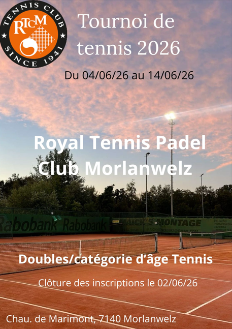 Information: Tournois de doubles + toutes les catégories d'âge homme et femme